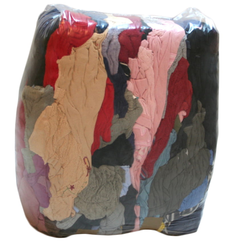 Sortowane czyściwo z odzieży (pozbawione guzików, zamków itp), nie zawiera syntetyków.