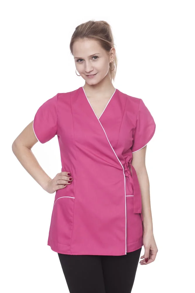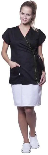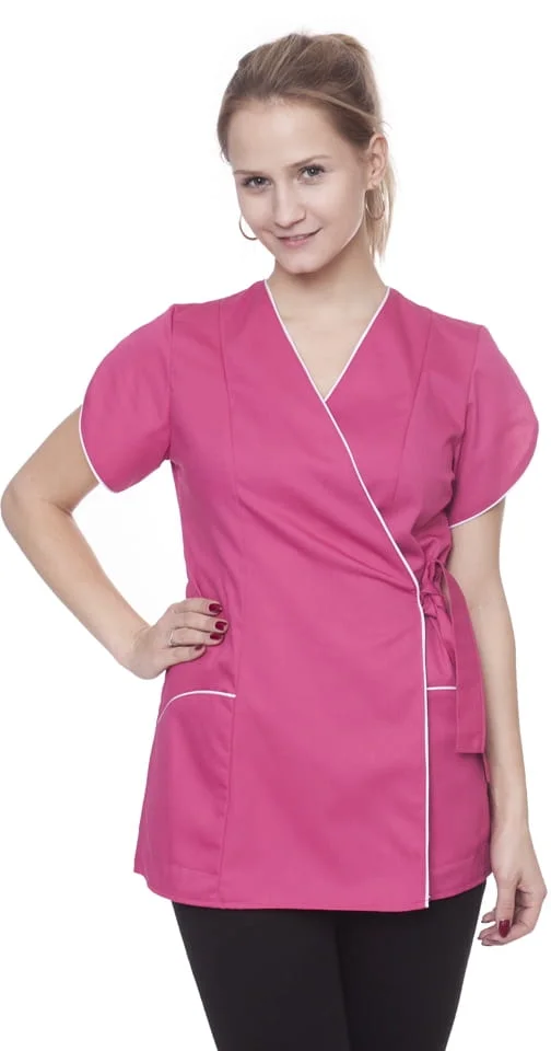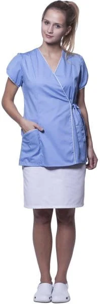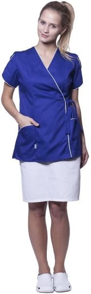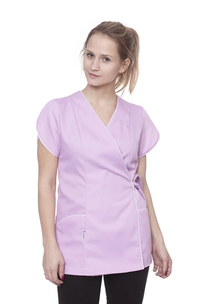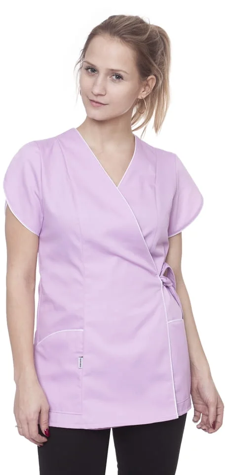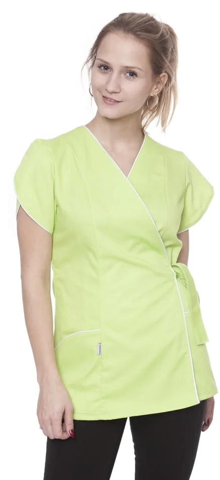 Wprowadź powiew świeżości do swojej garderoby zawodowej. Fartuch Yoko wyróżnia się oryginalnym rękawkiem typu tulipan i asymetrycznym krojem, łącząc modny wygląd z pełną funkcjonalnością odzieży medycznej.