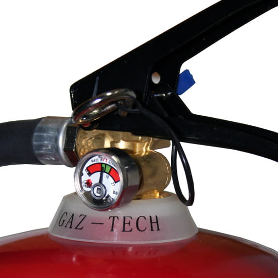 zawór wyposażony we wskaźnik ciśnienia umożliwiający kontrolę ciśnienia w gaśnicy,