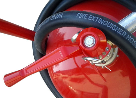poręcznego wózka umożliwiającego dogodny transport gaśnicy do źródła pożaru