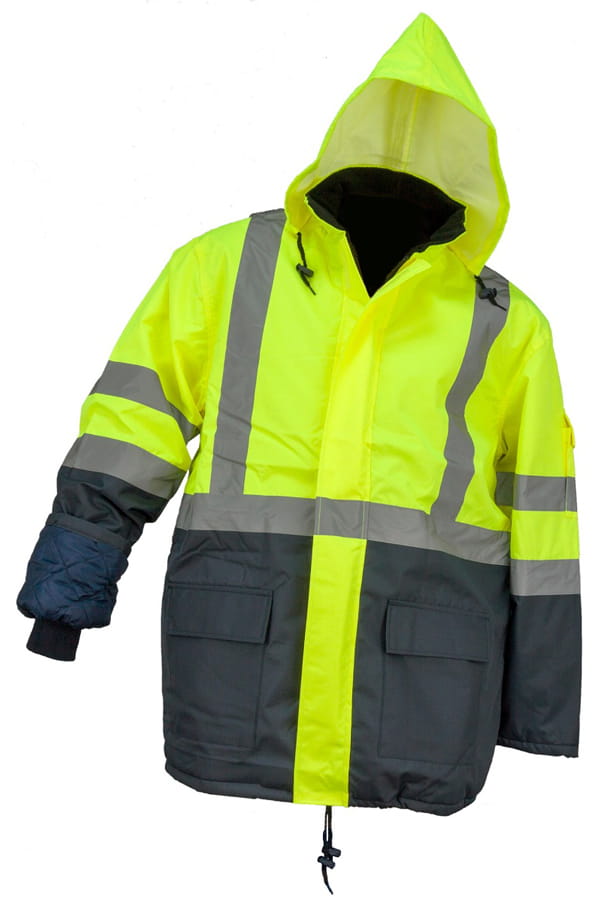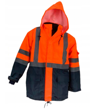 Ocieplana kurtka ostrzegawcza z kapturem, renomowanej firmy , wykonana z najlepszych gatunkowo materiałów.