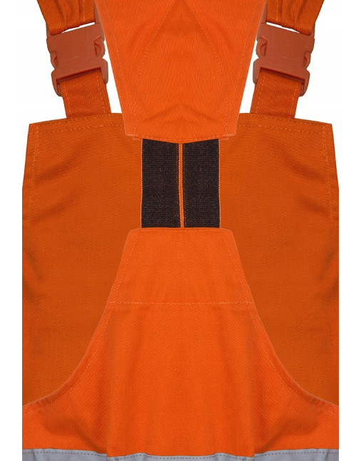 Szelki regulowane – wyposażone w elastyczną wstawkę z gumą, zapewniają lepsze dopasowanie do sylwetki i komfort podczas pracy.