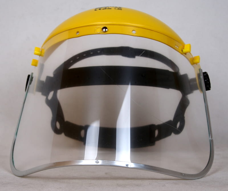 Prezentujemy Państwu osłonę twarzy, składającą się z szybki przeciwodpryskowej, nagłowia i zespołu zawiasowego.