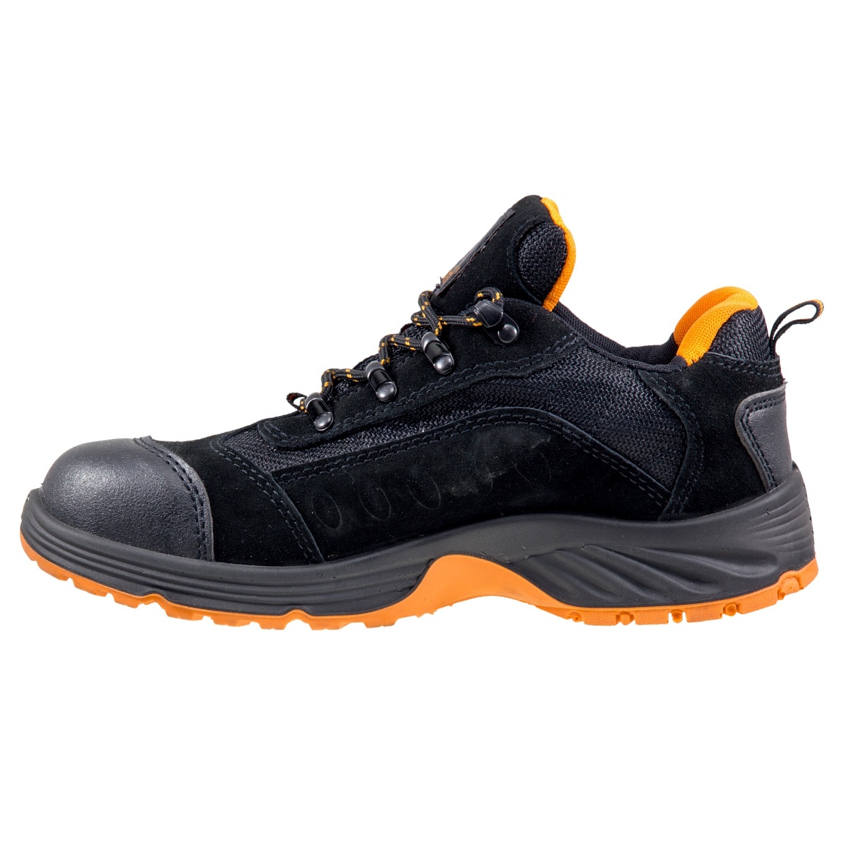 Zastosowany metalowy podnosek chroni palce, a solidna konstrukcja z nubukowej skóry bydlęcej zwiększa odporność na zużycie.