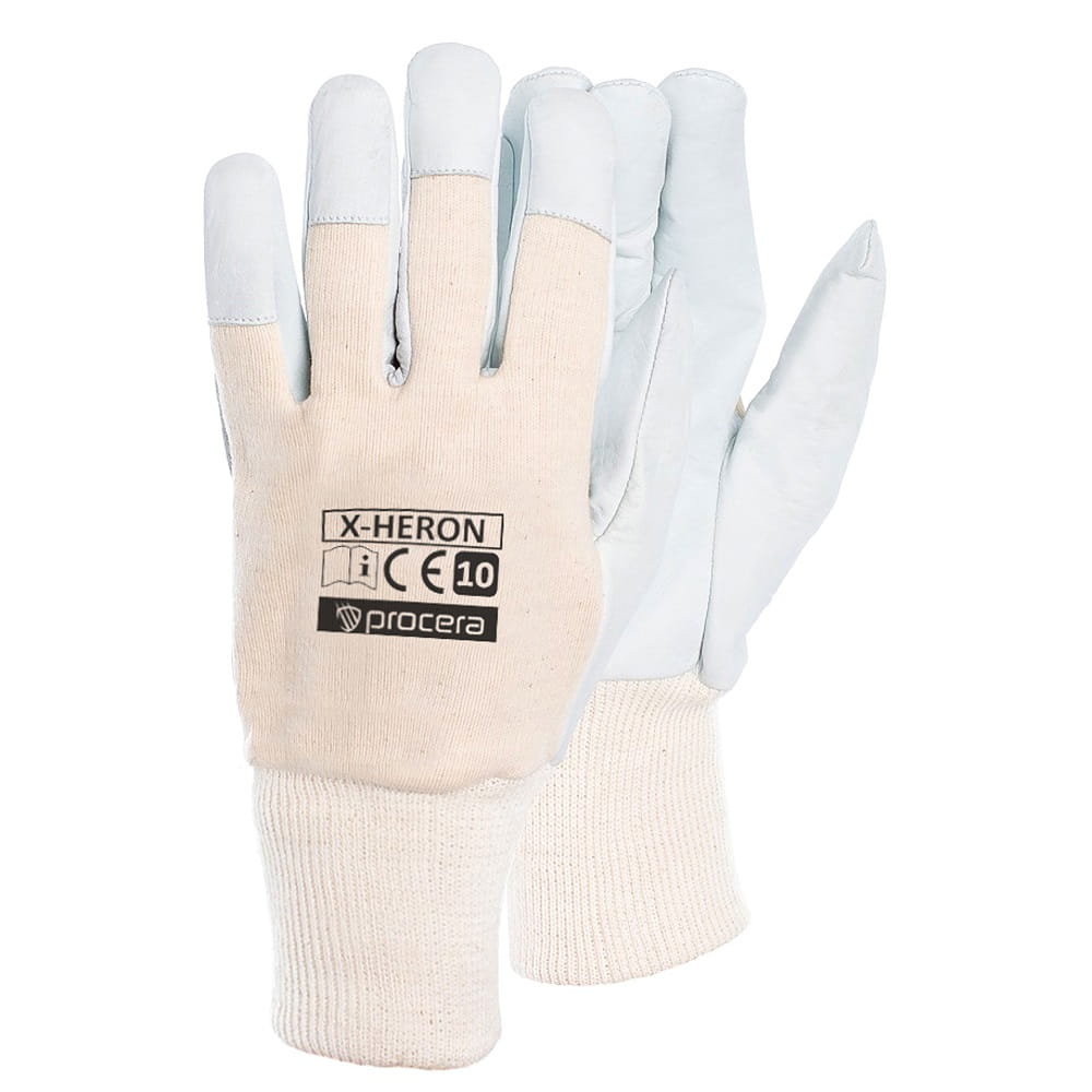 Rękawice X-HERON wykonane w części chwytnej z jednego kawałka licowej skóry koziej , wierzch wykonany z elastycznej tkaniny bawełnianej w naturalnym kolorze.
