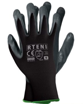 Specjalistyczne rękawice ochronne wykonane z poliestru, oraz dodatkowo powleczone nitrylem dla lepszego zabezpieczenia dłoni.