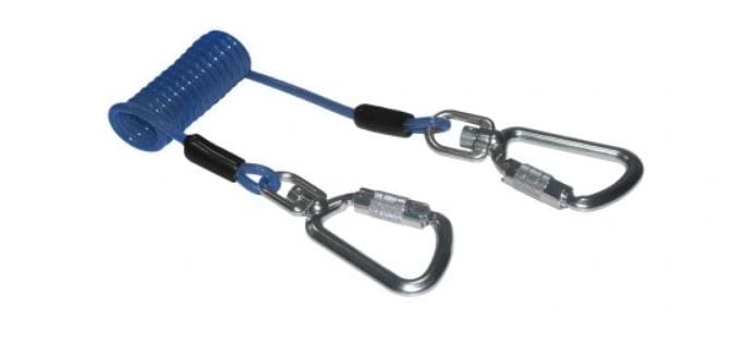 Uchwyt wykonany jest z elastycznej spirali, co zapewnia dodatkową ochronę narzędzi przed przypadkowym wypadnięciem. Zintegrowane karabińczyki umożliwiają bezpieczne mocowanie uchwytu do taśmy uprzęży, zapewniając użytkownikowi pełną kontrolę nad przenoszonymi narzędziami.