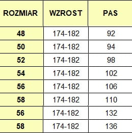 Pas: podwyższony z tyłu, wszyta gumka po bokach, dodatkowe szlufki na pasek