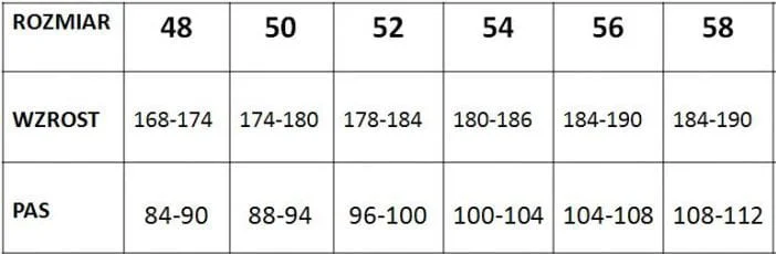 Wszystkie rozmiary dostępne na 182 cm wzrostu