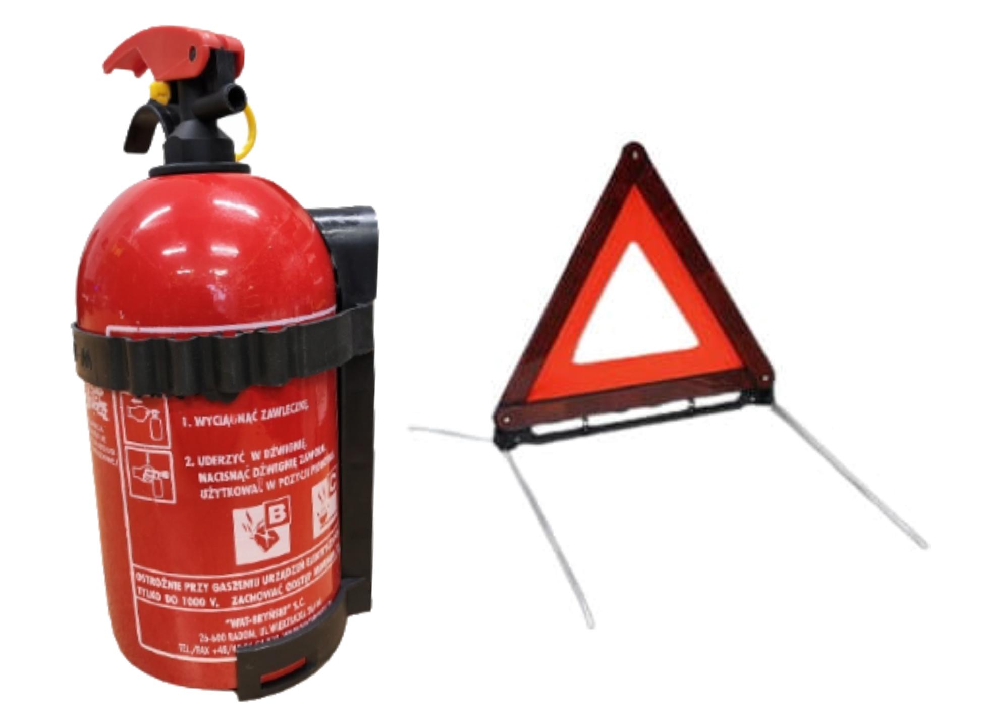 Zestaw samochodowy z gaśnicą proszkową i trójkątem ostrzegawczym