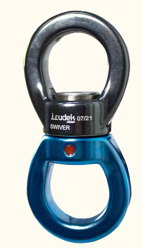 Jest to dwuczęściowe złącze, które obraca się niezależnie od siebie, co pozwala na swobodne poruszanie liny w każdym kierunku bez ryzyka skręcenia.